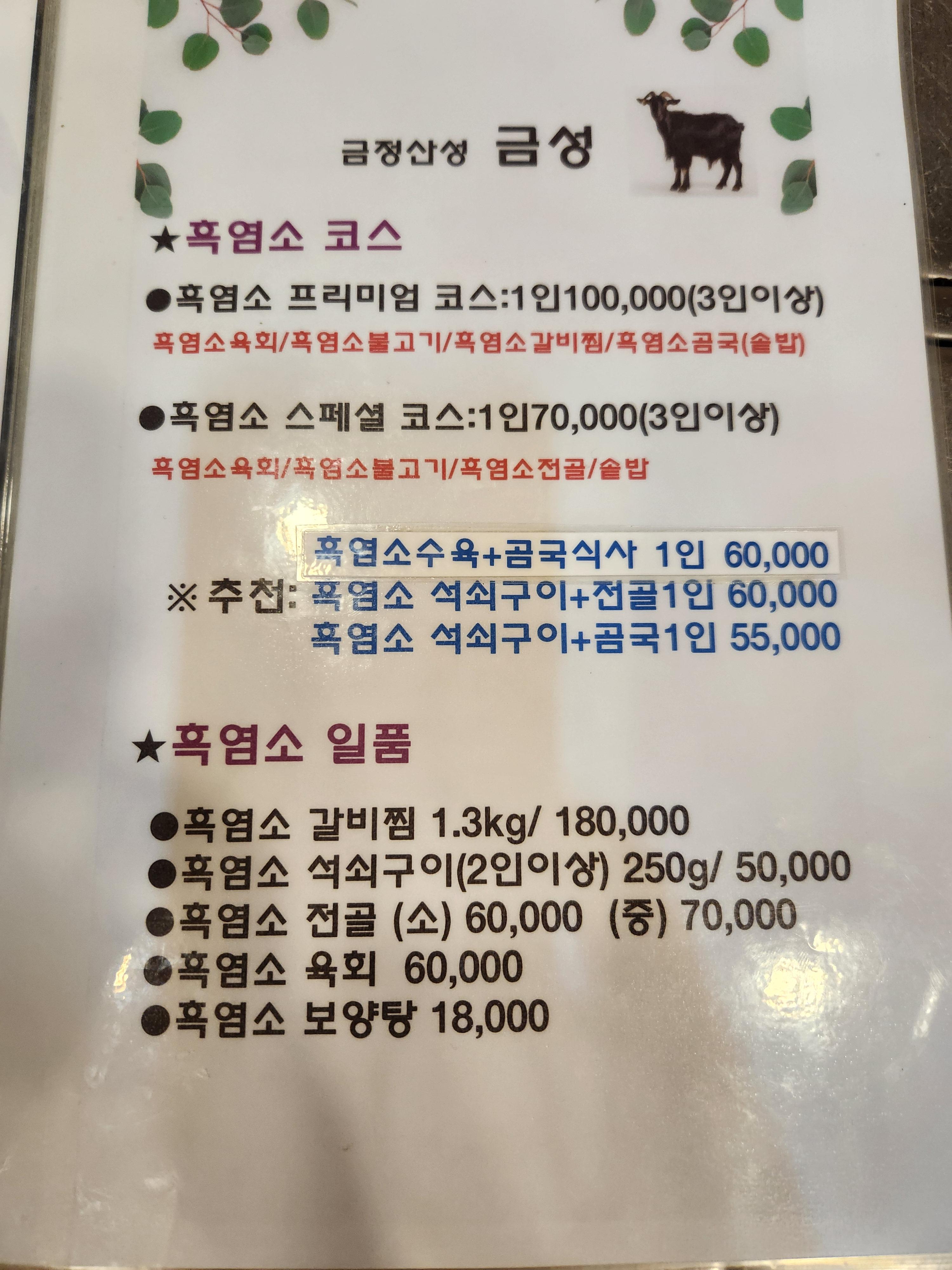 흑염소 코스요리 관련 명인이시니